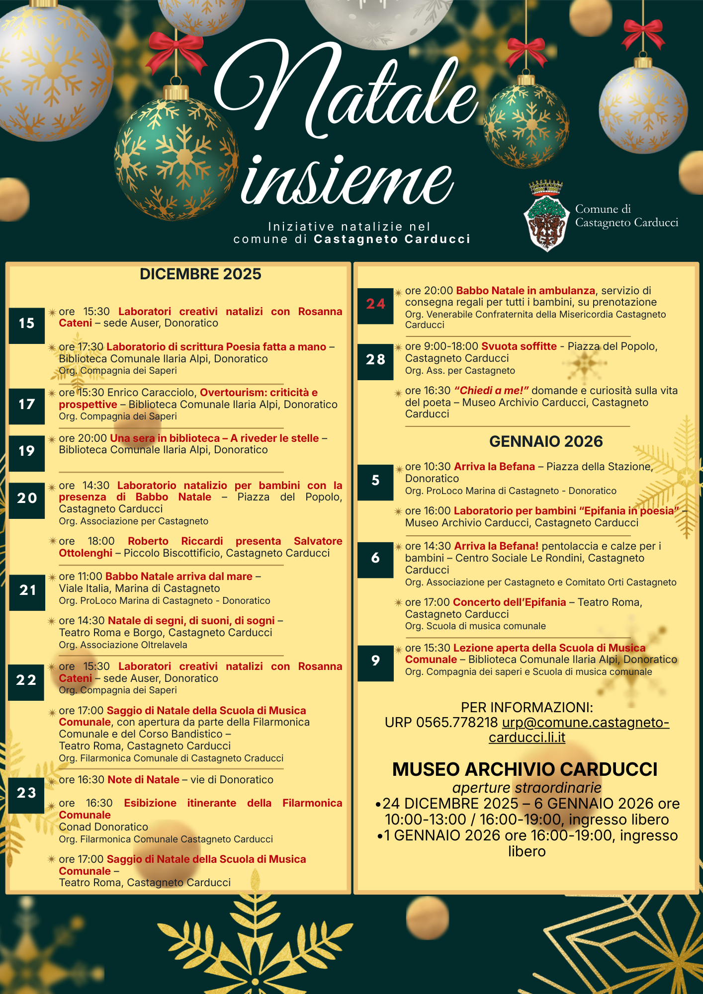 Qui di seguito le iniziative patrocinate dal comune di Castagneto Carducci per le festività natalizie: